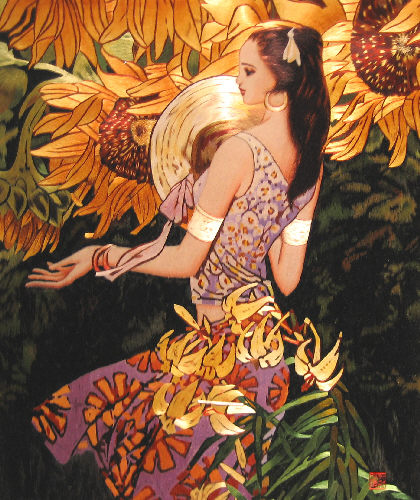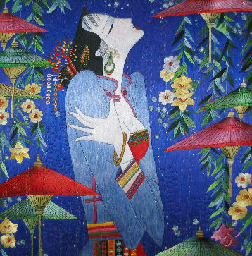 Les artistes contemporains utilisent une très grande palette de fils de soie de couleurs et finesses différentes de telle sorte que leurs broderies d’art apparaissent comme de véritables peintures avec une luminosité stupéfiante.